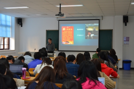 张亚辉的主题讲座题目为《人生目标与职业发展》,该报告分为五个部分:影响职业发展的因素;确定目标——让大学生活更有方向性、目的性;怎样确定目标;怎样实现目标以及实现目标要注意的问题。张老师用生动的事例对每一个部分进行详细阐述,并引用一些名人名言和国外大学的相关调查,有力地论证确立目标、做好职业规划对当代大学生的重要性。张老师还强调作为一名入党积极分子及预备党员,我们应该将自己的人生目标、职业目标同政治目标相结合,培养“四个意识”,提高共产主义觉悟,全心全意为人民服务。