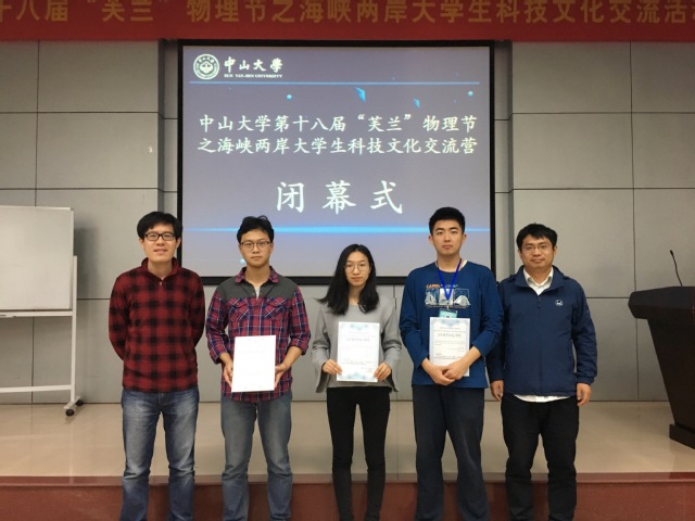 (通讯员 阎宝岩)近日,我院选派3名优秀本科生刘志峰、张忆舟、张子昂,在实验中心陈宗强老师、学院团委阎宝岩老师的带领下,参加第十八届芙兰物理节之海峡两岸大学生科技文化交流活动,并取得优异成绩。