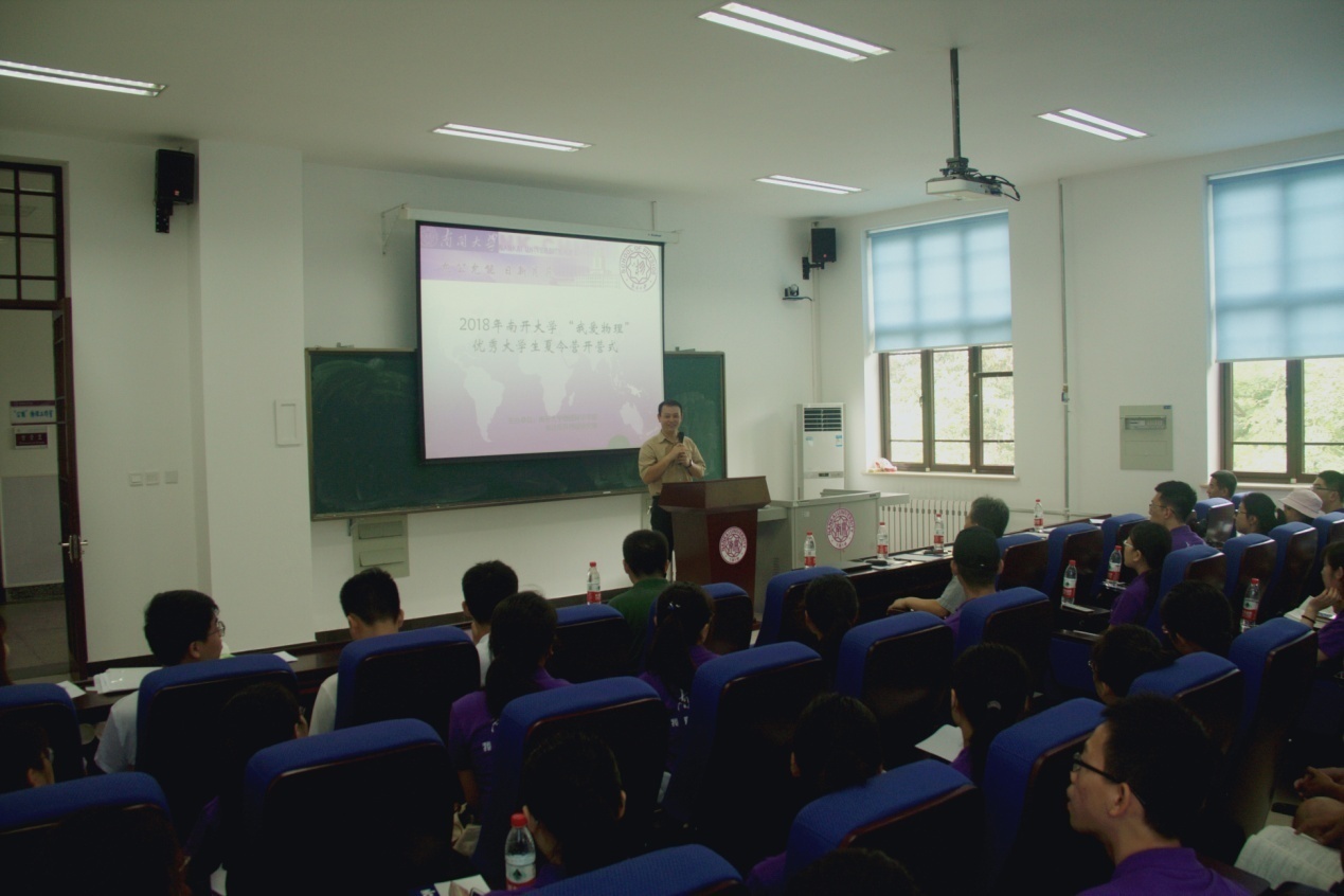 开营式上,王巍从“1—10”十个数字出发,就顶通漫画 的配套设施、教学条件、科研平台、资助体系、公能校训等方面进行了生动风趣的介绍,阐释了南开人将家国放在第一位、由小我到大我的风度和品格。张国权从物理学科的历史沿革出发,对学院的发展概况、师资队伍、学科建设、课程设置、国际交流等方面进行了全面介绍。随后,刘玉斌代表理论物理学科,张国权代表光学学科,李宝会代表凝聚态学科,分别就各学科的基本情况向营员们进行了更为详尽的介绍。最后,吴强老师、董校老师分别作了题为“飞秒激光与晶体材料瞬态相互作用”和“高压下的物理和化学”的精彩报告。