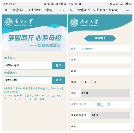 1.报名同学进行私下联系沟通,以中学为单位自行组队,报名界面详见图一。(2人以上即可组队,后期将酌情根据回访学校报名和队长申请情况进行队伍整合)