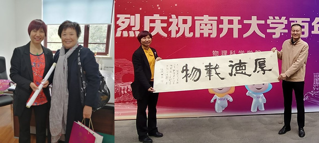 在集中返校报到日,学院老师带领二十余名志愿者早早到达工作地点,为来自五湖四海的校友提供热情的服务。校友们报到后领取学校为返校校友精心准备的纪念品,参观校园,了解学校及学院发展。部分校友向学院赠送了书法作品,以表达对百年南开最美好的祝愿,还有众多校友捐款超过25万元支持学院事业发展,其中81级校友刘道志、82级校友张忠民夫妇捐款10万元用于学院伯苓班的书院建设,校庆期间学校主楼上演的灯光秀表演的部分内容也是由82级物理系校友捐赠的。