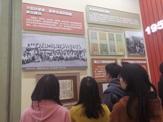 展览以“开辟和发展中国特色社会主义道路、建设社会主义现代化”为主题,以时间为轴共分为“序、屹立东方、改革开放、走向复兴、人间正道”五个部分。一张张珍贵的图片、一件件实物和模型充分展现了从1949年到2019年中华民族复兴强大的一个个关键的历史节点。参观过程中,党校学员们不时交流讨论,为我国所取得的一个个成就感到骄傲与自豪。