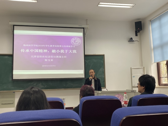 超过一个半小时的党课让同学们颇受启发,同学们的积极性高涨。2016级本科生辛琦说:“作为一名南开人,我深深的被先辈们的英雄事迹所触动。自1919年建校以来,一代代南开人始终将自己的命运同祖国和人民的命运紧密联系在一起,这些前辈们他们用青春、热血和生命,诠释了对国家民族的忠诚担当,值得我们永远怀念。作为新时代的青年人,我们要珍惜我们所拥有的一切,时刻保有一种‘竭尽全力,不留遗憾’的女排精神,在自己的成长道路上不断拼搏,做出我们这一代人的贡献。”