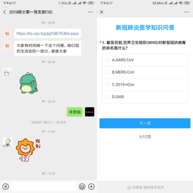 为了让支部党员更加充分了解疫情以及新型冠状病毒,支部设计并进行了防疫知识问卷调查。通过防疫知识问答,支部成员收获了知识同时增强了防疫能力!在此次问卷中,还特意设计了分辨谣言的题目,提醒同学们勿轻信谣言,抗击疫情保持清醒的头脑。