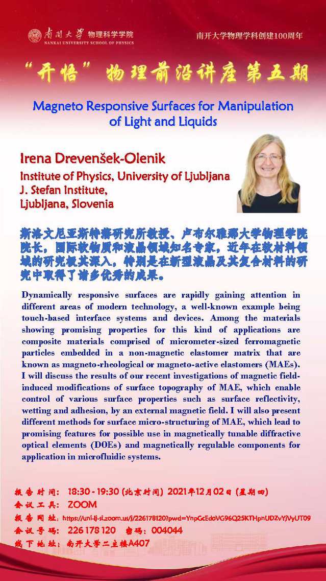 【“开悟”物理前沿讲座(第 5 期)】Magneto Responsive Surfaces for Manipulation of Light and Liquids
