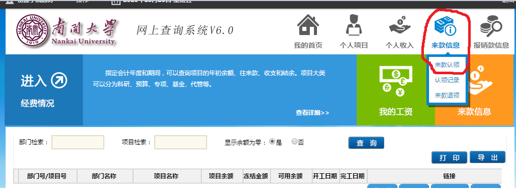 1、来款认领打印:登录财务平台——查询系统——来款信息——来款认领——输入相关信息进行查询——认领——保存、打印