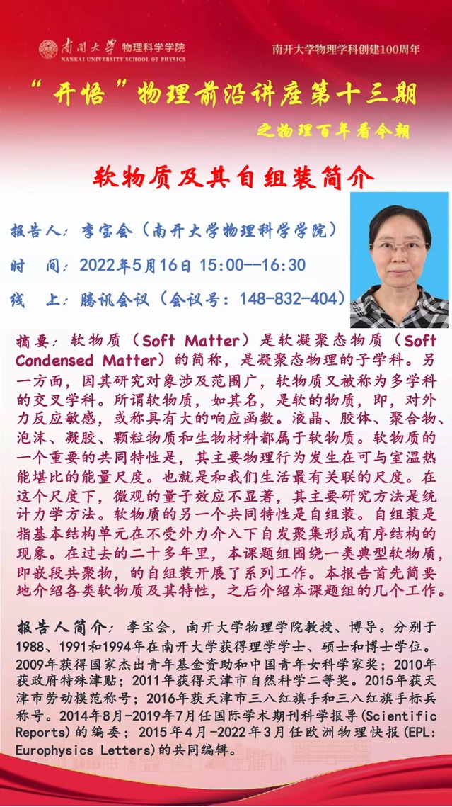 【“开悟”物理前沿讲座(第 13 期)】软物质及其自组装简介