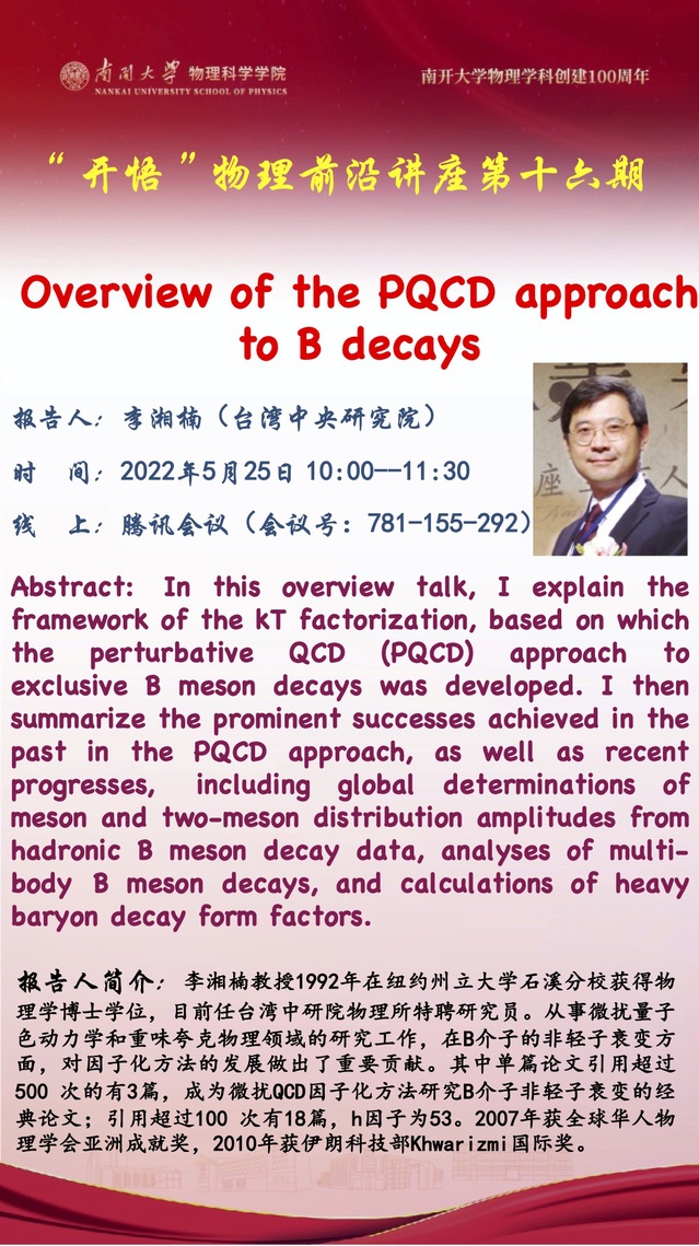 【“开悟”物理前沿讲座(第 16 期)】Overview of the PQCD approach to B decays