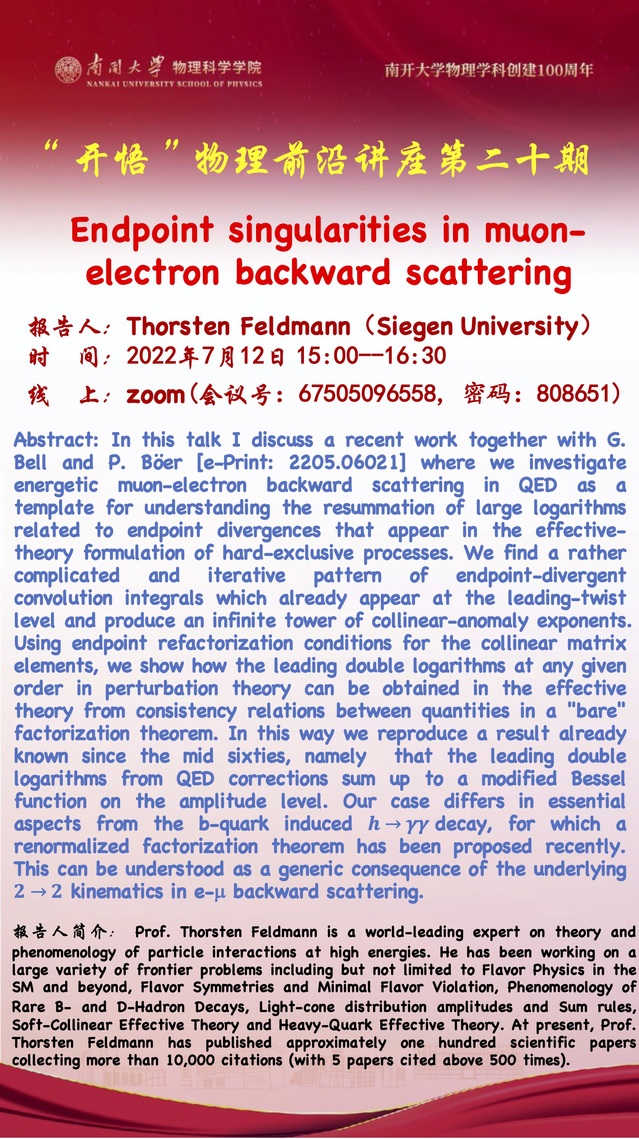 【“开悟”物理前沿讲座(第 20 期)】Endpoint singularities in muonelectron backward scattering