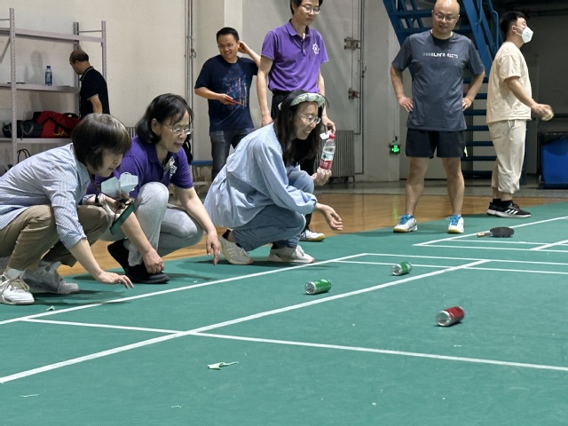 本次趣味运动会共11个项目,包括心有灵犀、乒乓球接力等4个集体项目,以及接力井字棋、吹气球、纸飞机大赛等7个单人项目。活动项目融入物理元素,具有学科特色。在“纸飞机大赛环节”,纸飞机的造型、大小、投掷力量以及投掷姿态等均会对纸飞机飞行的距离和滞空时间产生影响。赛场上口号声、欢笑声此起彼伏,呈现出一片热闹激烈的活跃氛围。