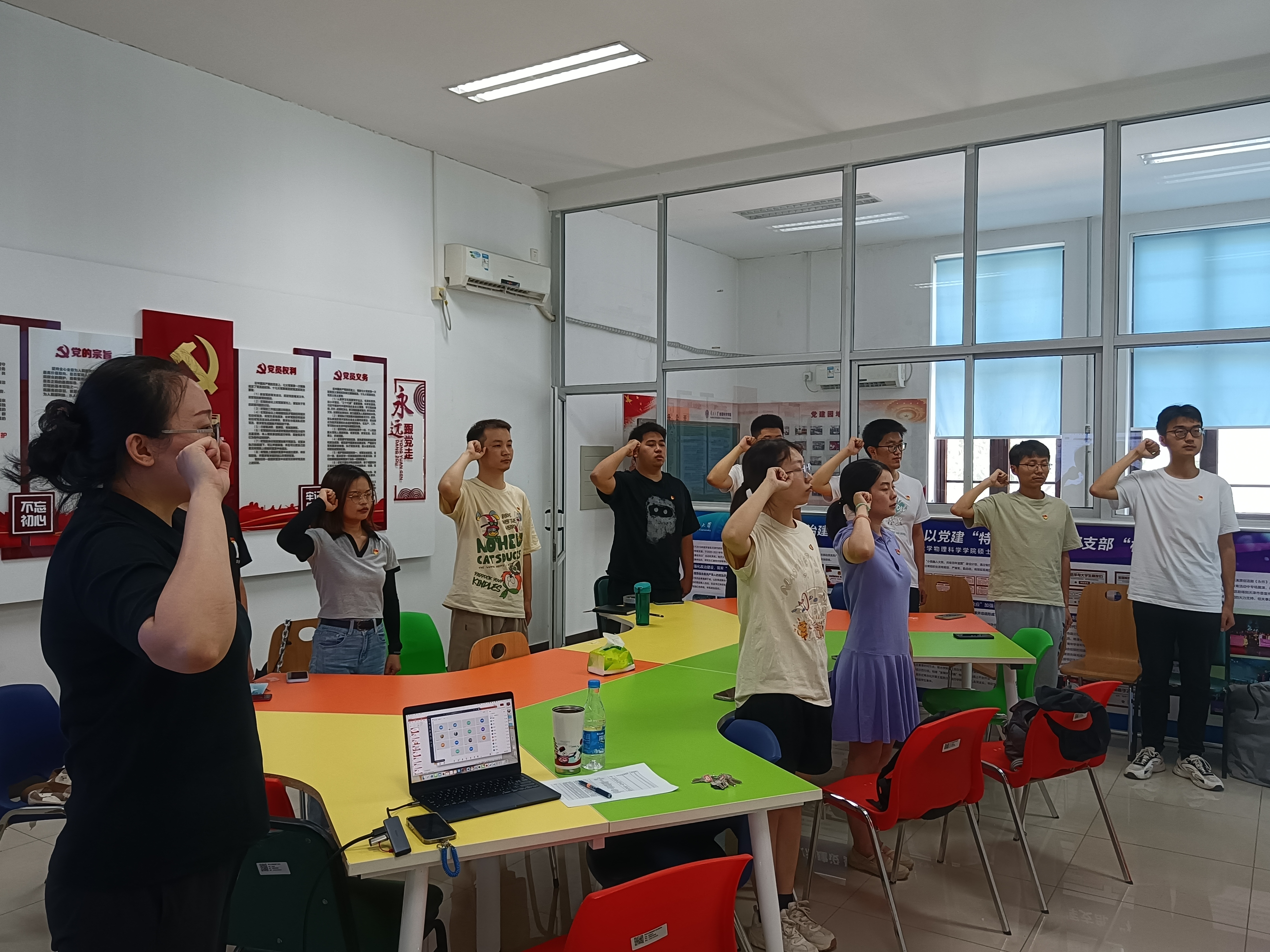 首先,与会师生党员面向党旗重温入党誓词,“我志愿加入中国共产党……”面对鲜红的党旗,党员们高举右拳,郑重宣誓,短短的12句话,句句掷地有声,代表了同学们对党的庄严承诺与终身追求。