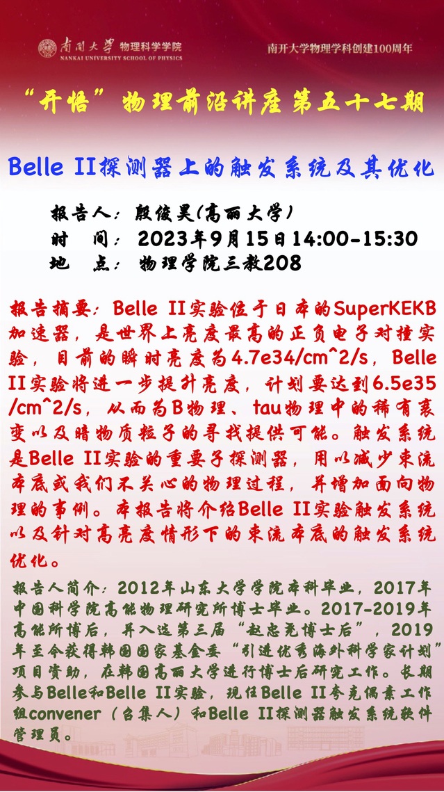 【“开悟”物理前沿讲座(第 57期)】Belle Ⅱ探测器上的触发系统及其优化