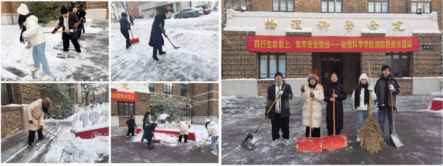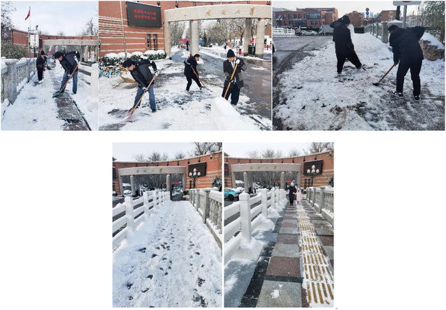 12月15日早上8:30,支部成员手持铁铲、扫帚等工具,投身到扫雪的工作中。此次扫雪除冰活动的主要负责区域为学院三教门口的道路、学校东门门口两侧的人行道,保障师生进出学院和学校的主要通道的通勤安全。经过一上午的辛勤劳动,支部成员们成功将主要通行道路的积雪全部清理干净,保障了师生们的出行安全。