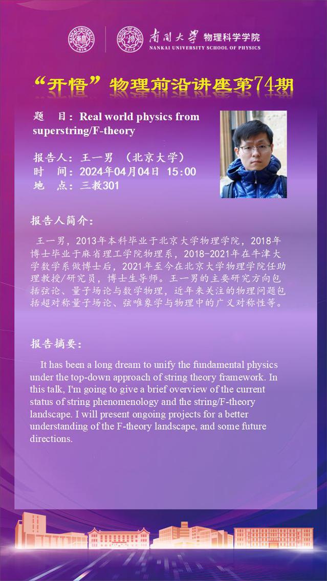 【“开悟”物理前沿讲座 (第74期)】Real world physics from superstring/F-theory