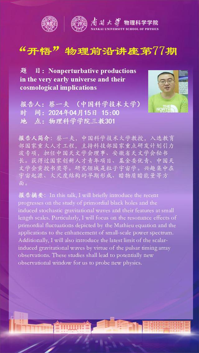 【“开悟” 物理前沿讲座 (第77期)】Nonperturbative productions in the very early universe and their cosmological implications