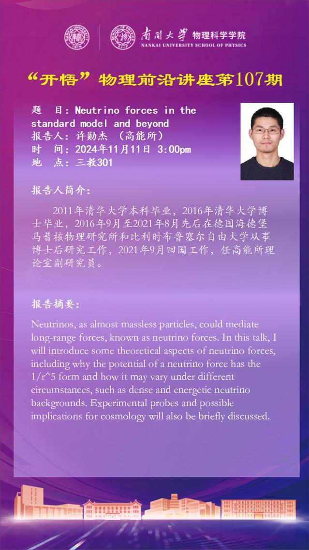 【“开悟”物理前沿讲座 (第107期)】Neutrino forces in the standard model nd beyond