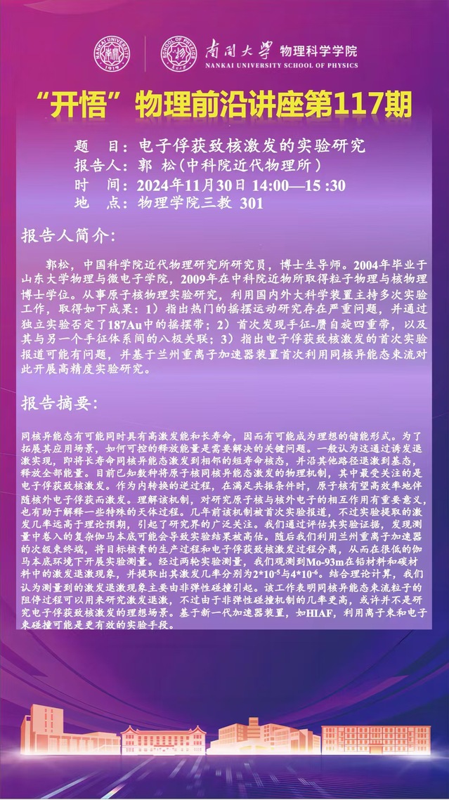 【“开悟”物理前沿讲座 (第117期)】电子俘获致核激发的实验研究