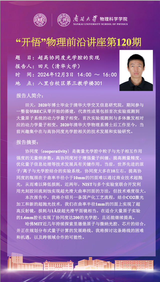 【“开悟”物理前沿讲座 (第120期)】超高协同度光学腔的实现