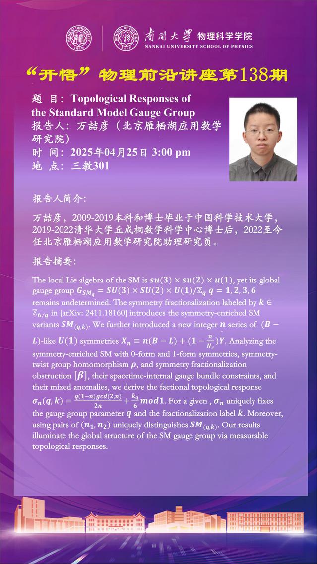 【“开悟” 物理前沿讲座(第138期)】Topological Responses of the Standard Model Gauge Group