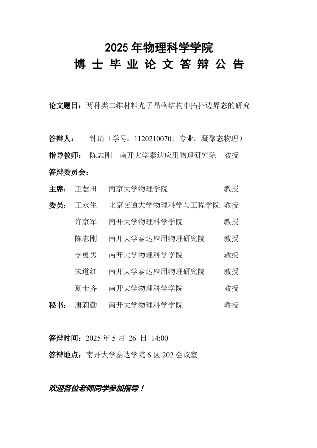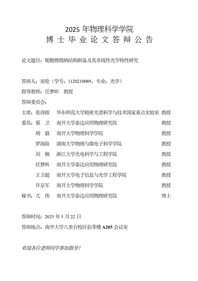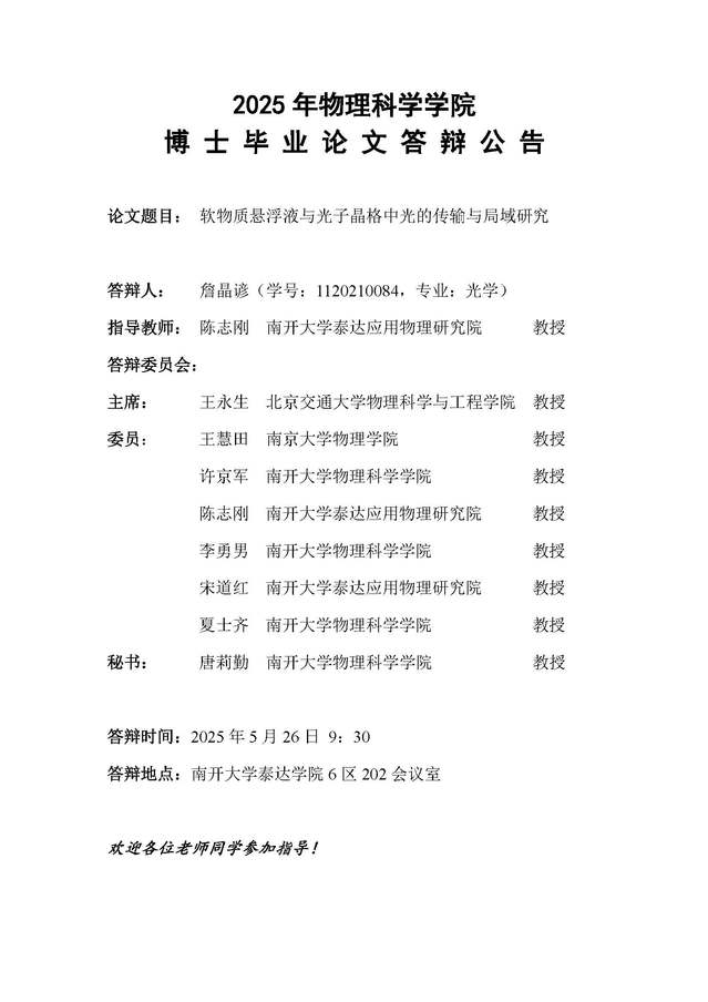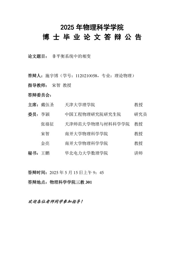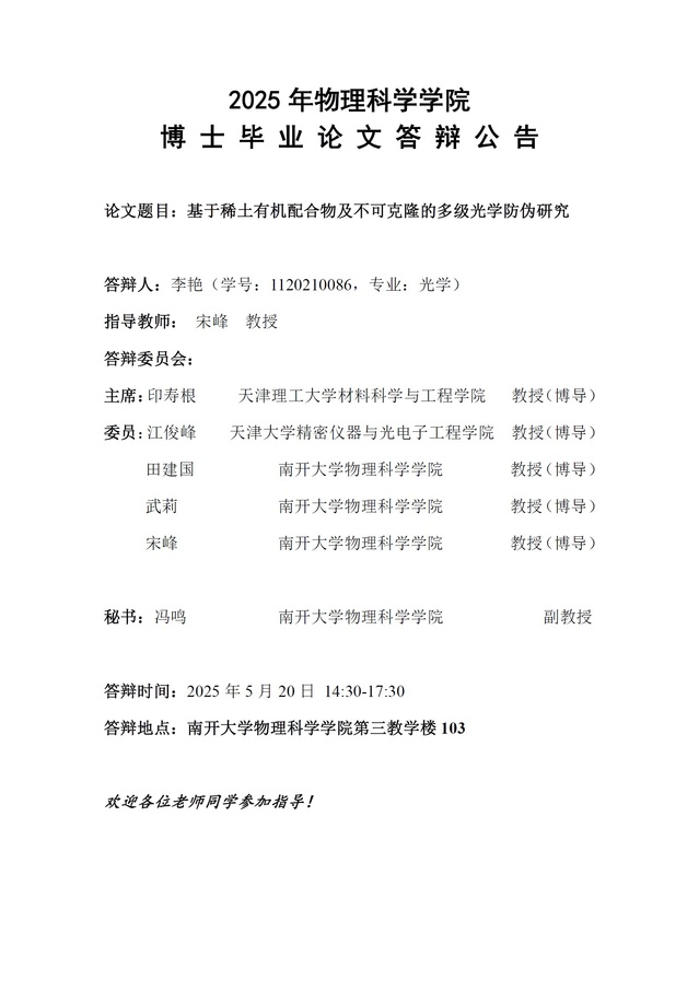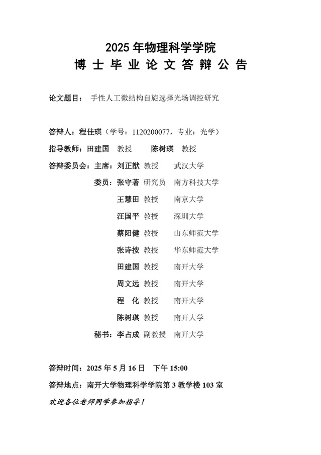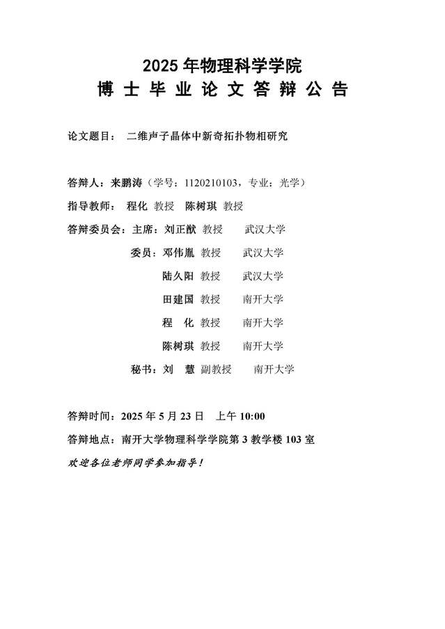 【毕业答辩】2025年春季学期顶通漫画 博士毕业论文答辩公告