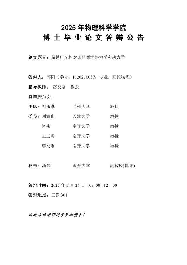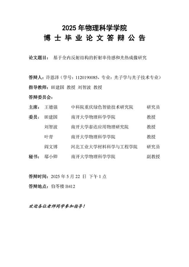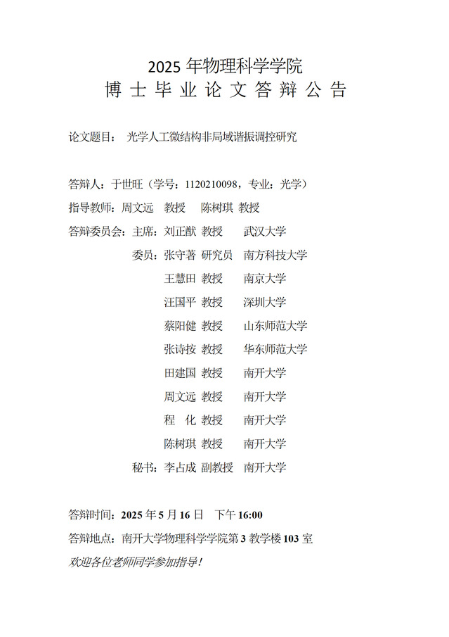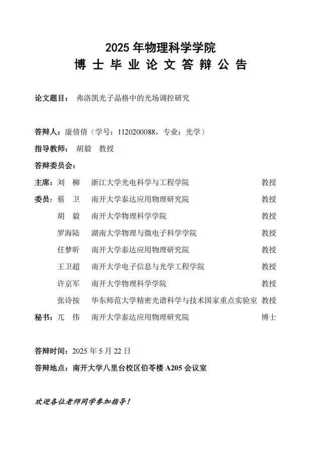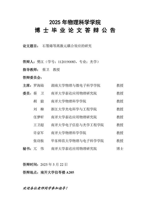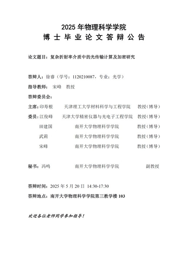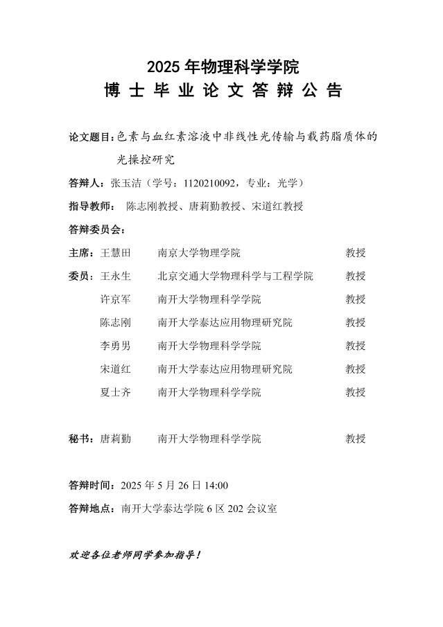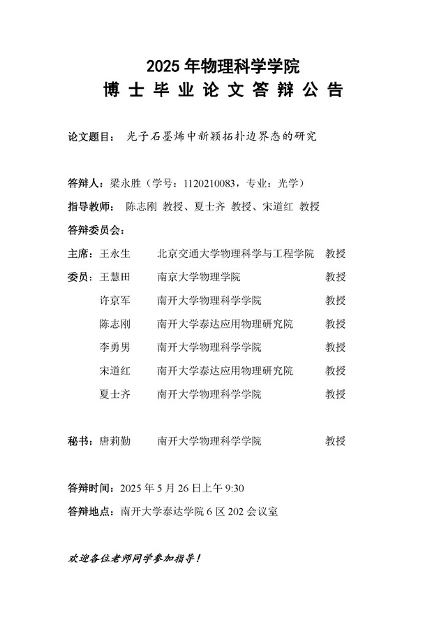 【毕业答辩】2025年春季学期顶通漫画 博士毕业论文答辩公告