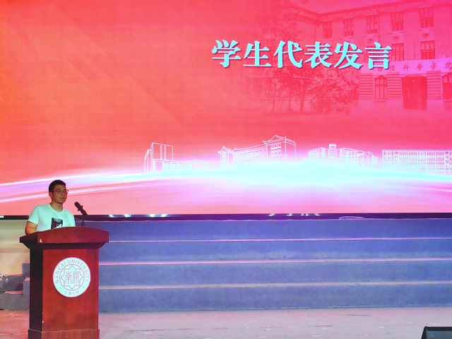本科生老生代表2023级物理伯苓班叶彦希结合自己在南开物理的学习生活感悟,告诉学弟学妹们要夯实基础、明确方向、共同努力,鼓励同学们既要保持热爱又要直面挑战,努力物理科学领域绽放光彩。研究生老生代表2024级理论物理专业博士生马恩锁讲述了自己在南开的科研和成长的经历,希望同学们珍惜美好时光,磨砺意志、锻炼本领,意气风发有真才实学的新南开人。