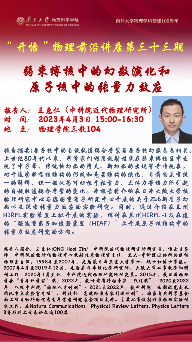 Kaiwu Lecture 33: 弱束缚核中的幻数演化和原子核中的张量力效应