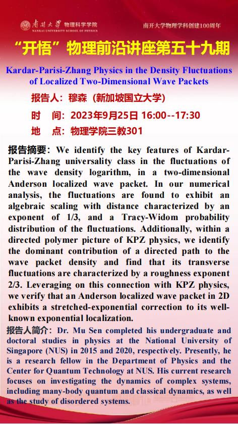 Kaiwu Lecture 59: Kardar-Parisi-Zhang Physics in the Density Fluctuations of Localized Two-Dimensional Wave Packets